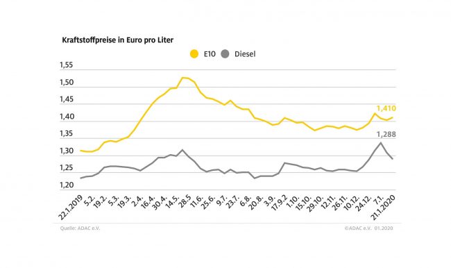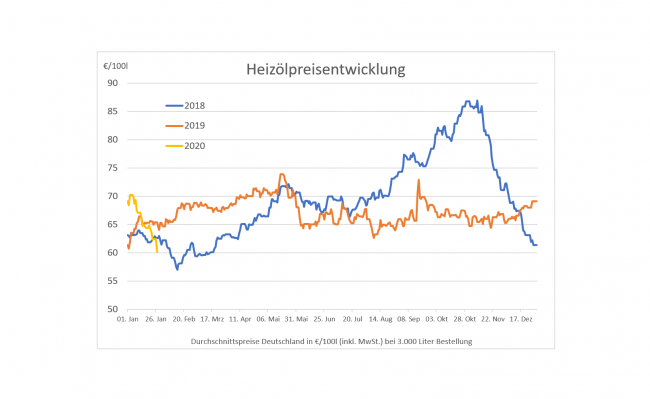Gleich zu Beginn des noch recht neuen Jahres zeichnet sich eine recht deutliche Talfahrt bei den Preisen ab. Es startete noch recht hoch, zumindest im 3-Jahres-Vergleich mit den höchsten Werten eines Jahresstarts – so ist es nun schon unter das Niveau von 2018 gerutscht. Mit Preisen im Schnitt von aktuell 60,17 € pro 100 Liter…
